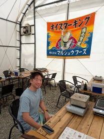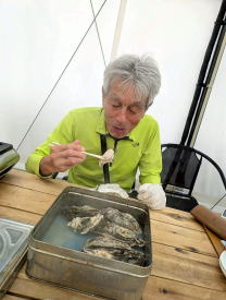 女川町の牡蠣小屋にて フーフーしながらふっくら牡蠣を頬ばる。