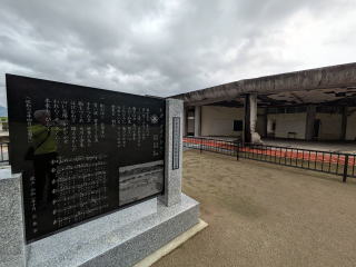 大川小学校震災遺跡 足洗い場には子どもたちが描いた卒業記念の「アメニモマケズ」の詩が遺る
