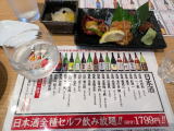 仙台駅に着いて新幹線の時間まで余裕があるので駅近くの居酒屋に入った。メニューに「60分限定地酒全種飲み放題。1,799円」がある。迷わず注文する。仕事中の禁酒の揺りっ返しが来た。いつもこれだからなぁ~。 |
