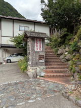 今日の調査地に向かう 奈良田温泉「白根館」。売店で記念の手ぬぐい(印付)を買う