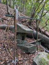 (左)石川三郷町の文化財史跡「帯那峠の石かん」。(右)「山の神」を祀る。 山があっても「山梨(山無し)県」