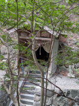 途中で異様な姿の茅葺き屋根に目が止まり、車を停めて見惚れてしまう。崩れた茅葺き屋根全体に松や様々な灌木が生い茂り、まさに天空の箱庭である。「美は乱調に有り」とはこの事かと思わず唸ってしまった。