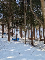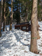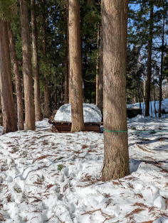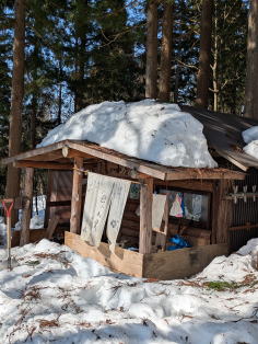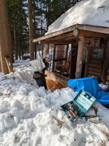 おやじ山の小屋周りの風景 雪に埋もれた「おやじ小屋」と 「風の小屋」