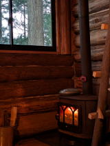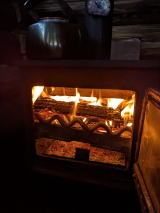 「風の小屋」でストーブを焚く 火を肴にして酒を飲む(火には強い酒が合うようだ) |