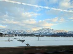 スキーシーズンで臨時の新幹線の指定券が取れた。窓側に坐って雪山を見ながらカップ酒を飲む。一瞬真っ白な越後三山が目に入った。急いでスマホで写真を撮った。下の写真はその1枚である。つかの間のおやじ山の旅が終わった。