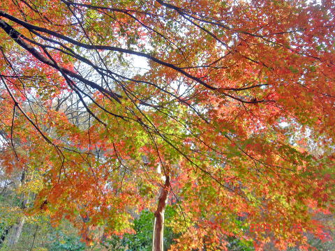 | ハウチワカエデと同様、おやじ山にはたくさん生えている。ヤマモミジというと、山にあって秋になると紅葉するものの総称であるかのように誤解する人もいるが、「ヤマモミジ」がれっきとした種名である。もともとヤマモミジは北海道や本州の日本海側の多雪地帯に多く見られる樹木で、太平洋側に生えるイロハモミジよりは葉や果実が大きい。 |