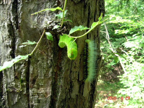2006年にはおやじ山のクリの木にウスタビガとクスサンが大発生した。ウスタビガの緑の幼虫