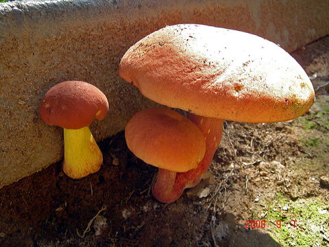 | 夏から初秋(8月下旬頃)に発生する。下の写真はキャンプ場に張ったキッチンテントの中に生えたキノコで、テントを撤収した時に見つけてビックリした。威風堂々と何やら凄い貫禄だった。 尚、ジコウ(ジコウボウ=ジカボウ)とは食用イグチに与えられた越後や信州地方の方言である。 |
