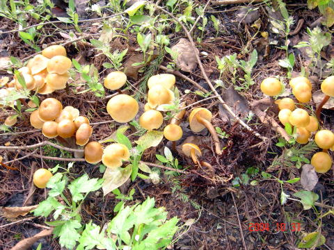 作業道路脇のカツラ林にきれいな列をなして生えていた。最初はヒメアジロガサモドキとアップしたが、匿名の方から間違いのご指摘を受けた。それで長岡きのこ同好会のSさんに問合せて本種と分かった。