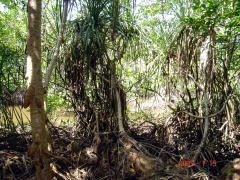 マングローブの杖根(じょうこん)。何となく熱帯のムードが・・・ ニボン(左の背の高い木)とマングローブ(中央奥)