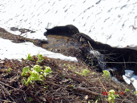 何と言っても早春の象徴的な植物である。正式種名は「フキ」であるが敬意を表して「フキノトウ」 と独立名で載せた。おやじ小屋のすぐ西側の斜面で、雪が消えたところからみずみずしい黄色のフ キノトウが顔を出す。 「よくまあこの寒いのに、ご苦労さん!」と言いながらも手でもぎって、夕飯の味噌汁の具にする。