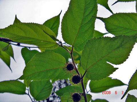 イガのようで良く目につく。果実は橙赤色に熟して食べられるが、やはり口当たりは良くない。